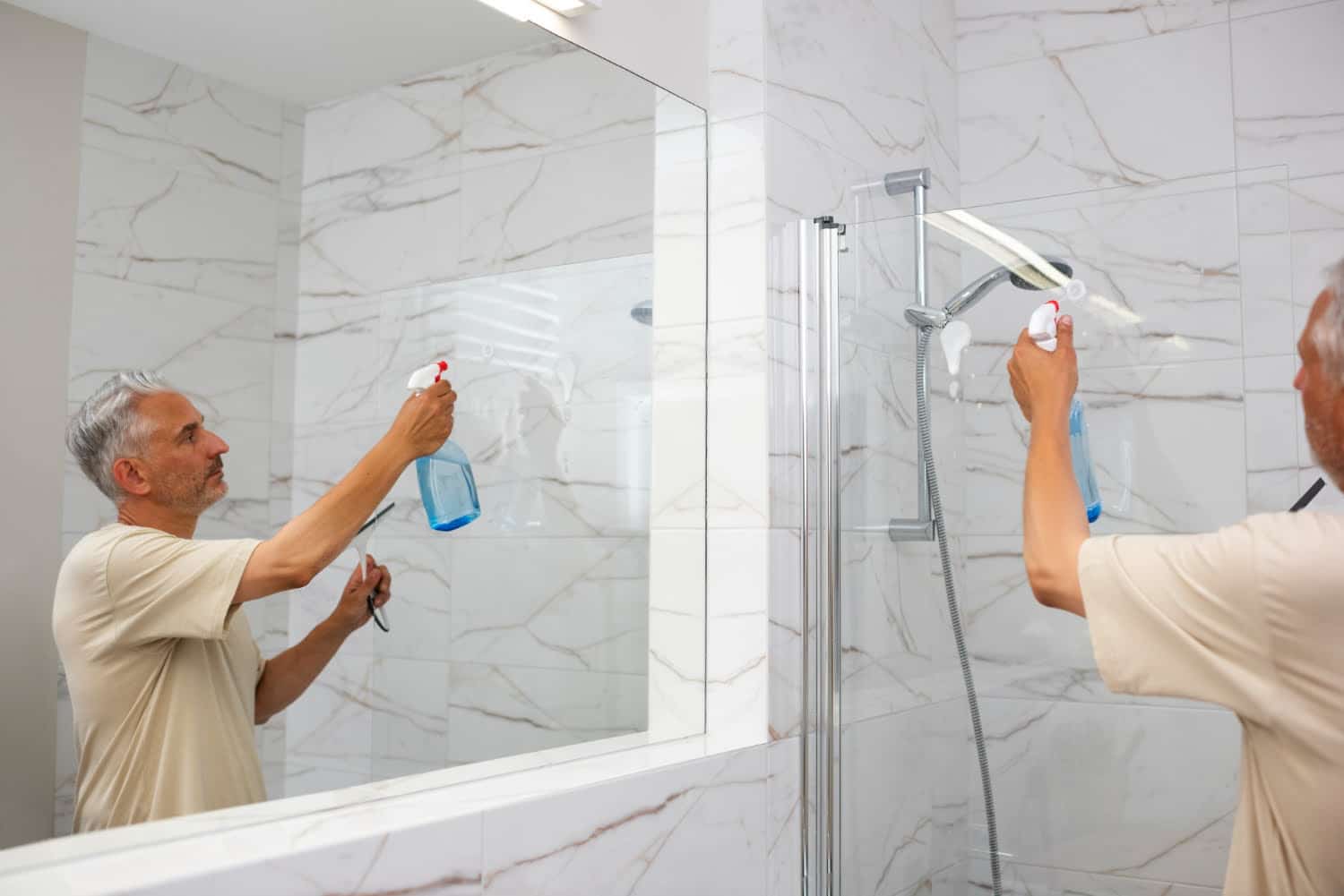 « Plusieurs personnes sous-estiment l’efficacité d’un simple passage de raclette régulier après la douche. L’utilisation de la raclette suffit à éviter la formation de couches tenaces de calcaire. »