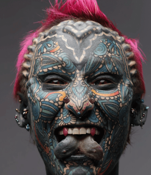 En plus des tatouages, Esperance a également entrepris 89 modifications corporelles impressionnantes. Cela inclut une langue fendue, des implants faciaux, et des piercings dans des endroits peu communs comme ses lèvres et ses gencives. Elle est même allée jusqu’à retirer partiellement une partie de ses oreilles pour accentuer son esthétique unique.